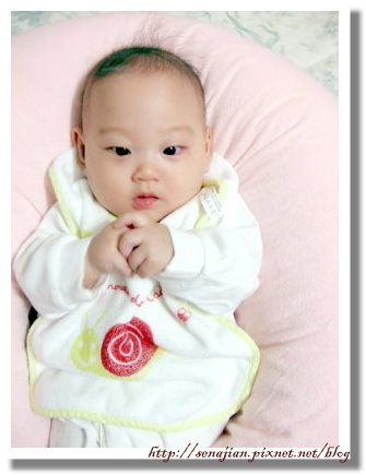 自己再去找一個高一點的學坐枕給軒喝奶和學坐使用,軒躺著都會吐奶,因此每回吃飽後都要先坐一會兒,沒有學坐枕就很不方便,到用品店一看,原來我原來用的那款餵奶枕是小號的,難怪我總覺得很小。