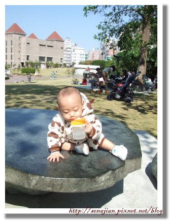 NUBY的水杯用到軒1Y7M,軒開始會模仿大人用杯子喝水,然後站在我的腳邊一直看一直討喝水,好幾次都趁著我不注意爬到飲水機旁邊拿我的水杯來喝,有時候常常弄了一地的水,搞得我頭很大,現在功力越來越好,水杯拿下來不會翻倒,還可以直接拿起來灌,喝得有模有樣呢!雖然還是會滴出來,可是技術算不錯了,還能把水喝到見底,2008/6/9我買茶裏王回來喝,軒看我喝他討著喝,一直吵個不停,我就喝光後裝一些水給他喝,竟然喝光光,很少漏出來呢!真不能小看軒呀!
