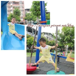在這晃了10幾分鐘,就熱到受不了,軒在這裡沒玩到什麼,老公就帶他去頭張公園玩溜滑梯,結果正好在整修,只能溜旁邊兩側的溜滑梯,以及在旁邊的其他設施玩耍,在這裡停留了10幾分鐘就離開了。