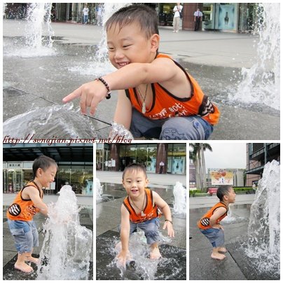 之前曾看過新光三越在平日會開水柱讓小朋友去玩耍,今天中午帶著軒的衣服,準備讓軒去新光三越玩水,順道幫喬挑今年的生日禮物,並且在回程後去收驚。