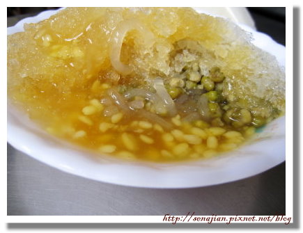 我們都是第一次吃到這樣的小吃,綠豆蒜煮出來是熱的,綜合口味多加了粉條與綠豆,冰的就是在熱的綠豆蒜上面再加一層碎冰,有種冷熱合一的感覺,非常獨特。