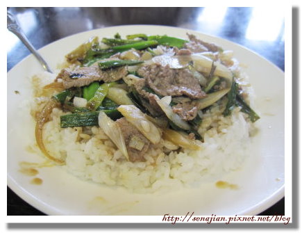 第五道是清偉點的蔥爆蓋飯,整個飯都是濃郁的蔥味,看起來就讓人食指大動,雖然我不吃蔥,但卻能感受到牛肉與蔥混合在一起的香味,清偉吃了一口接一口,不到10分鐘就吃完了,真是快速!