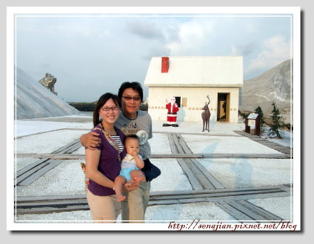 相機終於很不爭氣的沒電了,老公拿他的萬用充電器,試著在台灣鹽博物館充電,等待電池有了一點電量後,再去鹽山走走看看,因為這裡沒遮蔽物,非常炎熱,因此鹽山很適合下午過後的時間去,溫度不這麼熱,照相也比較照得到鹽山的景色。