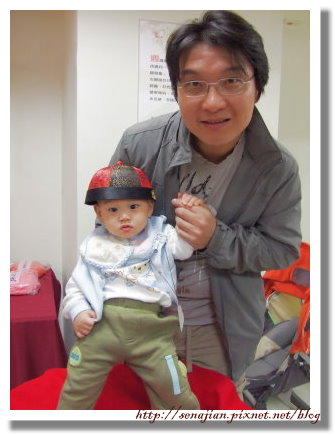 人挺多的,場地滿大的,優格媽也有一起參加喔!!看完介紹影片,就開始活動,輪到軒爬去抓的時候,一開始愣在原地都不動,到後來還哭哭,只好抱到前面讓他直接抓,軒軒考慮了好久,摸一摸看一看,還會抬頭看看拔拔麻麻,徵詢一下意見,挑了大概5分鐘,才選出算盤,真是大費周章。