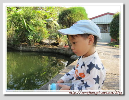 老媽說這裡蚊子多,要穿長袖的衣物並戴上帽子,免得被蚊子大軍攻陷,當時還無法深刻體會老媽的意思,老爸帶我們從魚池往田邊小路去,讓軒看看別人家養的鯉魚與魚塭的吳郭魚。