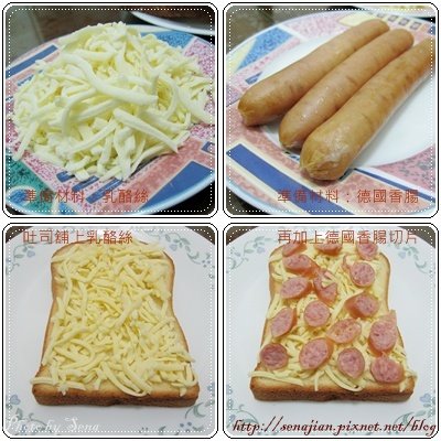 老媽有到食品行買乳酪絲和德國香腸,運用烤箱可以把土司製作成披薩,我最愛的就是牽絲乳酪,搭配上厚切的奶油風味土司,讓雪媽特製的愛心披薩土司,早餐除了有愛,還有香醇的好味道。