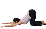 每天晚上必做的事,就是得趴在床上做瑜珈的貓式排氣,就像下圖女麻豆的姿勢,不知道貓式的人還以為雪媽是在調整胎位....