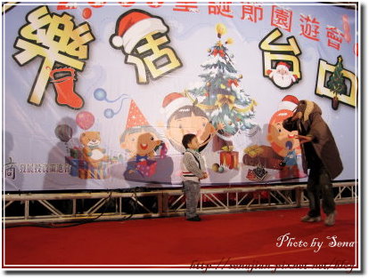 我們在綠園道的誠品停留,這裡很有聖誕節的氣氛,有充氣的Q版聖誕老公公、閃亮亮聖誕樹與麋鹿,還有舞台上表演。