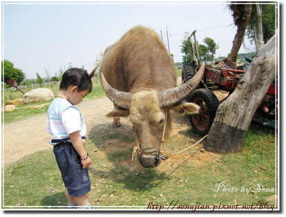 接著去餵水牛,水牛的腳上滿滿的蒼蠅,看起來滿嚇人的,軒遇到水牛也不怕,還很靠近的餵牠哩....