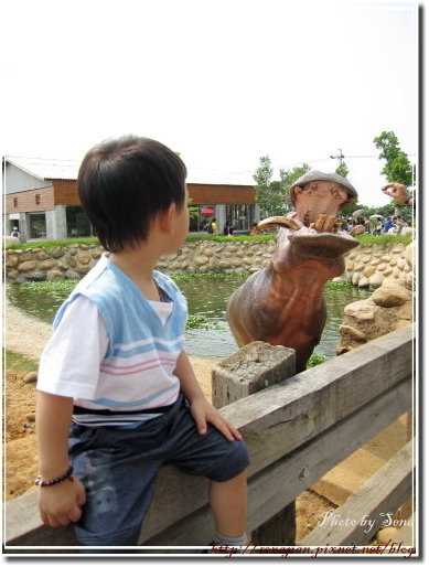 牧場內最刺激的大概就是鱷魚了,剛進來園區只有看到假鱷魚,軒就已經有點怕怕了,我們頂多在網子外面看看拍拍合照,也沒有近距離的接觸。