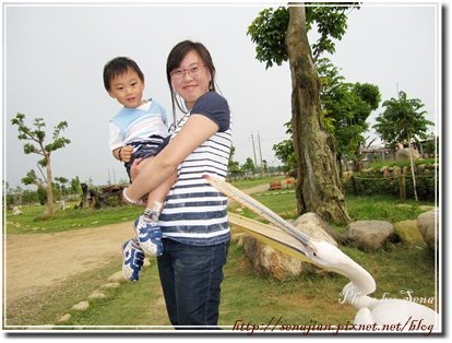 最後我抱著軒去跟鵜鶘近距離拍照。