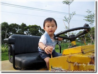 本來要讓軒體驗壓路機,無奈鑰匙被拿出去了,所以就只能讓軒坐在壓路機上玩方向盤過乾癮,軒玩了十幾分鐘才肯下來,看他開得煞有其事,我們也不忍心破壞他的興致呀!