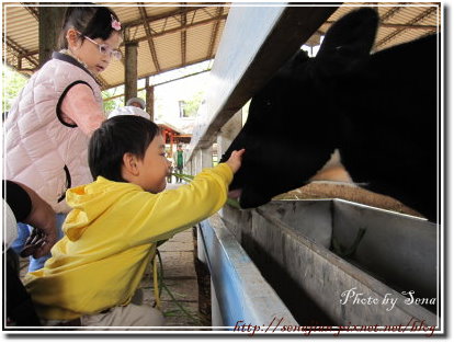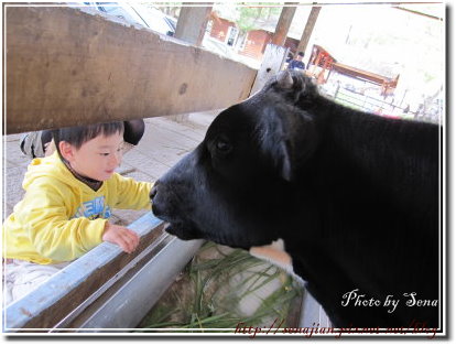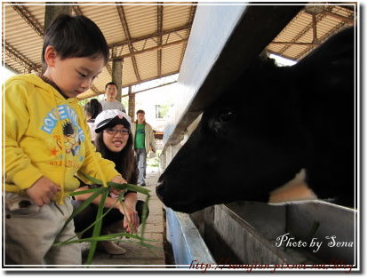 童心未泯的老妹都很熱衷餵牛,眼看這隻小牛快吃飽了,我們才帶軒離開,到販賣部去吃吃喝喝。