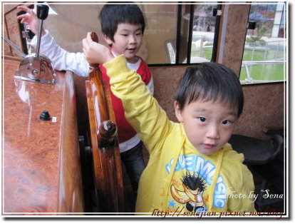 離開牧場,老爸帶我們到哈魚碼頭去,上次聽我說過這裡的設施,老爸與老媽好奇來這裡逛逛,今天是假日,哈魚一號遊艇有開放讓民眾上船試乘,軒跑到船艙,跟一個小哥哥一起玩,小哥哥還會指揮他要怎麼轉呢!