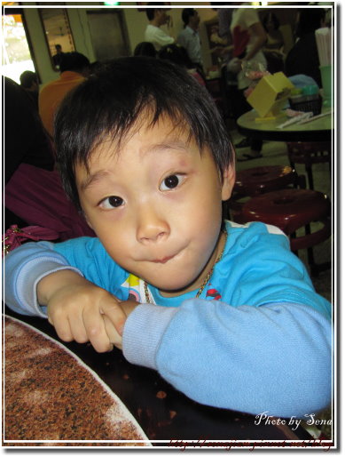 我們光等一個座位,就排了10幾分鐘,軒坐定位,很期待的等吃,還沒上菜之前,像蟲一樣東摸西摸。