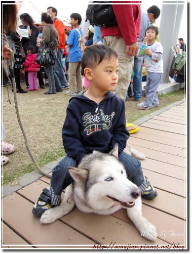 我們拿著闖關卡研究一番,找到闖關處開始排隊,長長的隊伍等起來非常無聊,老妹帶雪兒一起來,大家看到雪兒,紛紛上前撫摸一番,每個人對雪兒的眼睛議論紛紛,對於看起來像狼狗的哈士奇非常詫異。