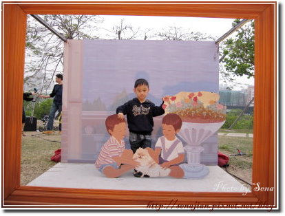 軒玩過遊戲後,到了名畫拍照區拍照,這裡我們昨天晚上來過,白天有活動,所以拍照時有演員與民眾合照,或是穿戴道具拍照。