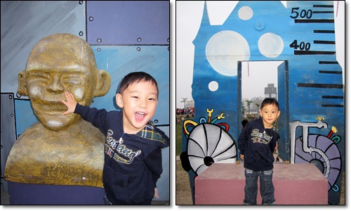 中午到一中街把老公的手機和我的相機修膜,在中友百貨等了好久才修好,下午3點多來到文心森林公園,看到了人山人海的景象,幾乎所有台中市的小朋友都聚集到這兒來了,原本計劃要讓軒去恐龍樂園裡面玩,這週末卻有闖關活動,取捨之下,讓軒去玩遊戲,恐龍展就等平日人少時再去逛吧!