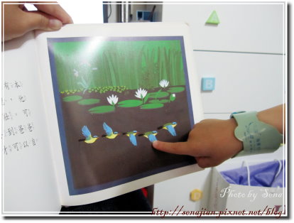 除了聽故事,軒還很喜歡生態、動物方面相關的書籍,我一邊唸著故事,他還會一邊發問,甚至看到圖書內的圖,順倒數一數有多少,也能藉由書中的圖畫,教他辨認顏色,大一點甚至可以認識國字。
