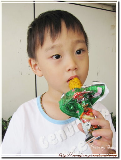 味付海苔口味比較重,有微微的胡椒味,軒跟我一樣很喜歡吃胡椒,味付海苔這個口味就成了他的最愛,兩種口味讓他挑,他毫不猶豫的選擇了味付海苔的玉米棒。