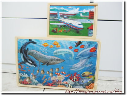 軒現在很喜歡把拼圖拿來跟我一起玩,我們就把拼圖當成互動遊戲,每一套拼圖,一人拼一組,軒看我拼還會盯著我抓錯,抓到了就當糾察隊指正一番,真是有趣,拼一輪下來,總共一起完成4套16組拼圖,至少都得陪上1小時左右在拼圖上呢!