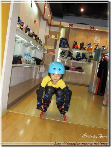 軒穿上直排輪沒多久,陸續有其他小朋友一起來練習,軒看到有人陪他學習,精神都來了,很努力的練習,櫃姐下午有事,讓教練代班,軒趁著教練在的時候,讓教練個別指導,姿勢經過修正,軒已經可以學習走角標了喔!