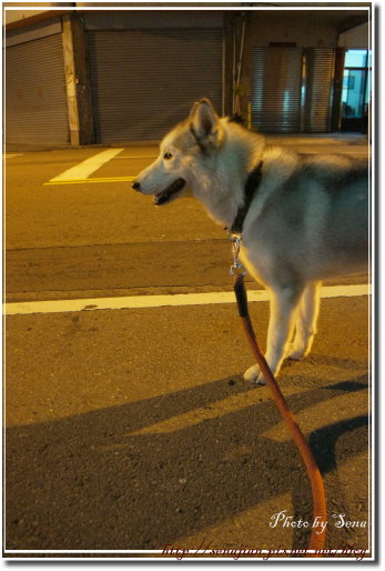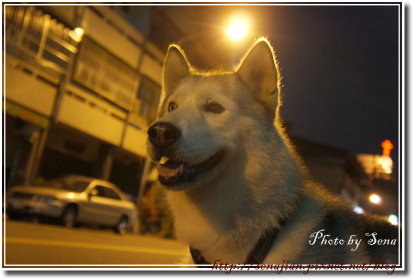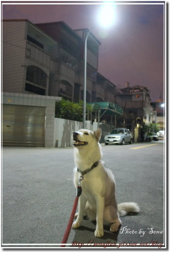 主體、背景、影子搭配得恰到好處,單眼拍起來果真與一般的數位相機不同,這也是我一直讚嘆的地方,馬路上的燈光昏暗,黃澄澄的路燈照耀在雪兒身上,有夕陽餘暉的錯覺呢!
