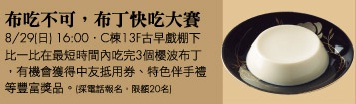 這次會病這麼嚴重就要回溯到8月底時參加的活動,雪媽平常都喝溫熱的茶水,即使大熱天,依舊喝溫水或溫飲,在外頭用餐,若有冰品,都會放到退冰後才品嘗,中友在8月底辦「府城食尚玩全特搜」,有布丁快吃大賽可以參加,老妹很開心的找我們報名,我、老公與老妹一起參加了這個吃布丁大賽。