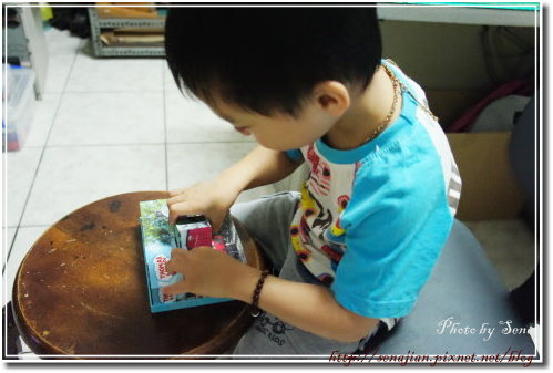 比較精緻的玩具,我都放在房間,可以拆、可以亂丟的玩具,就放在樓下,讓軒在樓下也有東西可以玩,軒在1樓時,沒事就拿著螺絲起子,開著檯燈在桌上拆他的車子,認真的模樣很可愛。