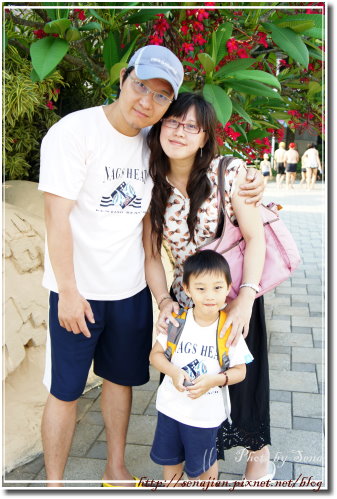 將近10點來到馬拉灣,氣溫很高,我先幫老公和軒塗好防曬乳,讓父子倆可以先去漂漂河玩耍,我跟老妹慢條斯理的在遮陽棚下擦防曬。