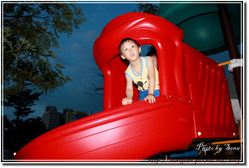 軒到文心森林公園旁的遊樂區玩一會兒,找不到玩伴,玩起來沒動力,一會兒就嚷嚷著要去百貨公司逛。