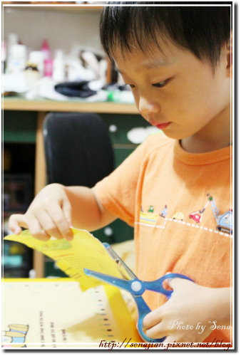 這不是軒第一次拿剪刀,今天難得剪得有模有樣,拿剪刀的姿勢標準,已經完全不需要我矯正囉!