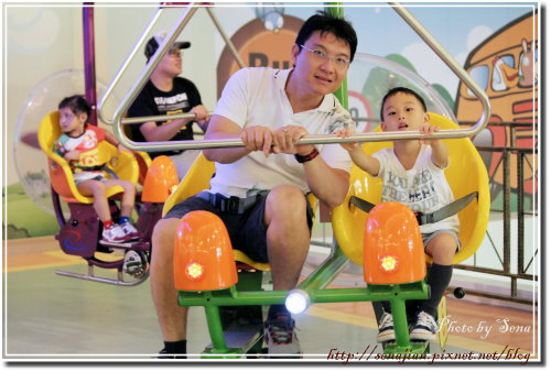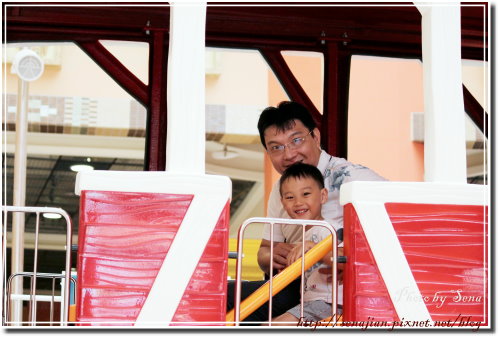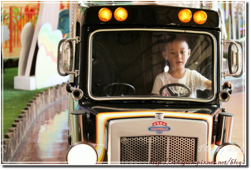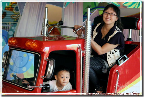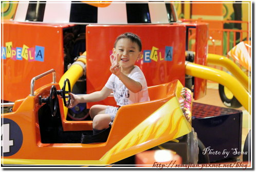 軒和喬分別坐不同的車子,兩個小傢伙拼命的按叭噗,這個設施就是車子環繞一圈,沒什麼特別,小朋友就愛這個吵翻天的叭噗啦!