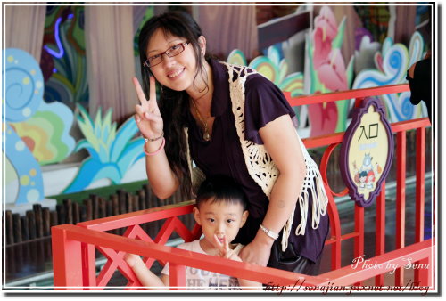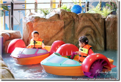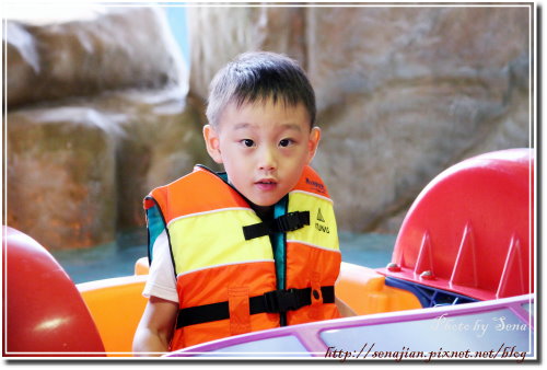 記得軒在綠盈牧場就玩過了,這次只是多穿了一件救生衣,去馬拉灣都沒穿過救生衣,玩這個義大世界遊樂園的小小船卻穿到了,真是不可思議!