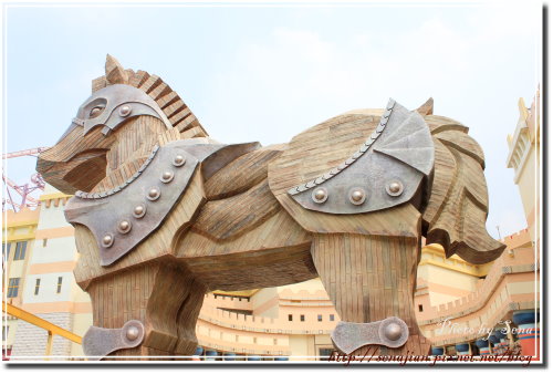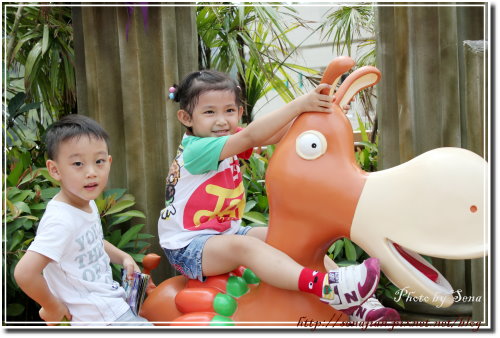 大木馬可遠觀不可褻玩焉,不過旁邊有個造景,驢子倒是可以騎一下拍張照啦!
