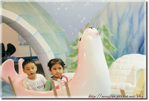 這一層樓就有比較多100公分可以玩的設施,海狗歷險記看起來不錯,讓小傢伙們坐一趟。