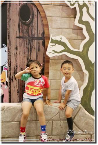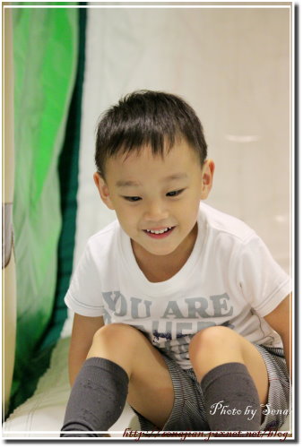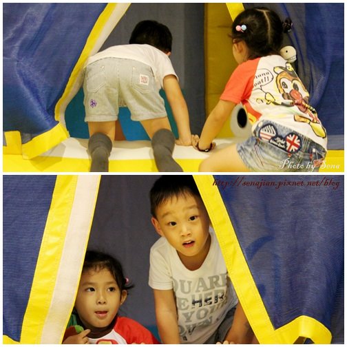 兩個小傢伙等待時,直街衝到歡樂城堡裡去玩了,這兒的感覺像是愛樂園與大型充氣遊樂設施的結合,小朋友肯定非常喜愛。