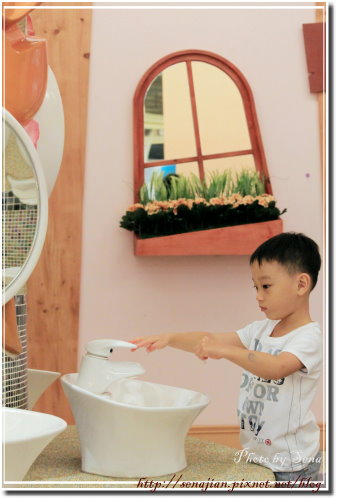小朋友洗手區高度剛剛好,不需要勞煩家長抱上洗手台。