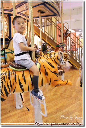 我們在戶外拍照,耗了一些時間跟軒約法三章,喬媽一家第一輪已經坐上旋轉木馬,帶著軒排隊,等著坐第二輪。
