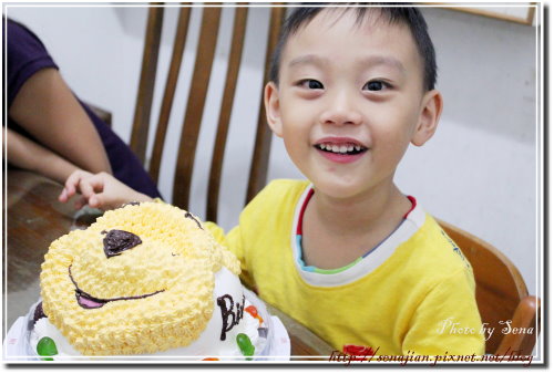 選擇的圖案由軒指定,他在吃飯時還一直唸著:「我的維尼蛋糕什麼時候會吃?」
