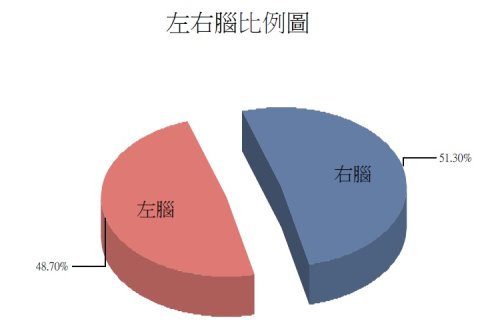 左腦(右手)掌管理性的語言及邏輯分析,右腦(左手)掌管感性的直覺及圖像感覺,軒是左撇子,所以右腦比較發達,檢測結果,果然右腦的比例偏高,但左右腦的發展還算均衡。