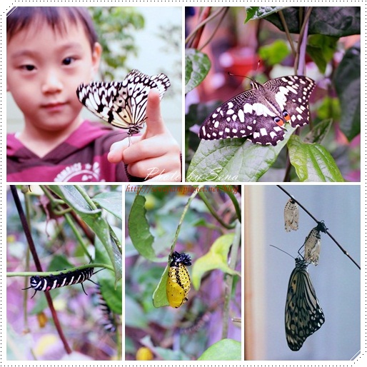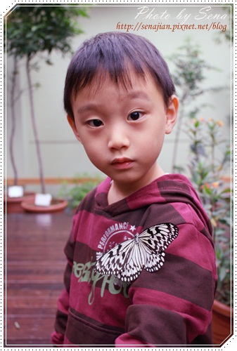 後來我告訴他蝴蝶很溫和,軒逐漸接受蝴蝶的親近,停在身上,看起來好像裝飾品,超漂亮!
