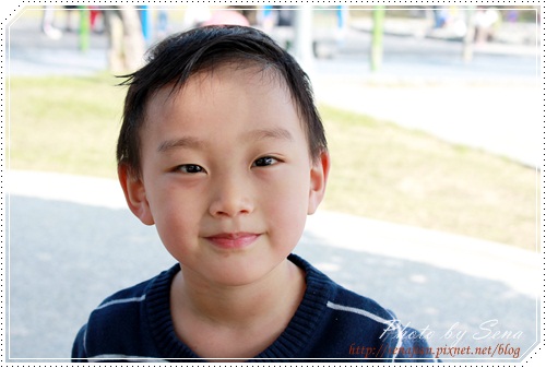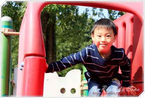 一進公園就看到好大的沙坑,裡頭是石礫狀的砂質,不會黏手也很好清理,只可惜沒帶上軒的沙灘玩具。