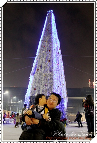 在聖誕節前到市政府走走,晚上吃飽飯就出發去排隊坐小火車,新市政府富麗堂皇,裝潢得唯美且時尚,碩大的電視牆,更能凸顯出壯觀的建築格局。