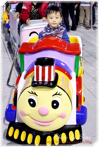最後一輪讓軒自己一個人上小火車,坐上第一個搖晃的車頭座位。