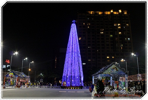 聖誕節的活動,就在新市政府展開序幕,高聳的彩燈聖誕樹中間穿鑿了一個隧道。
