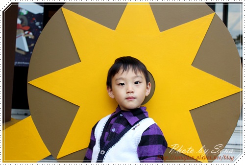 人如果再靠右一點,就好像一朵太陽花了,可惜軒不太配合,頭一直黏著不肯動,勉強當個小星星好了!