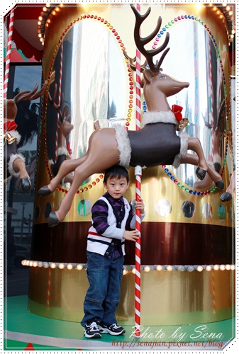 去勤美的路上,經過SOGO,乍看之下,我們都以為門口擺了可以乘坐的旋轉木馬,停好車近看,原來是麋鹿,雖然設計成旋轉麋鹿,但卻不能騎乘,只能拍拍照而已呢!
