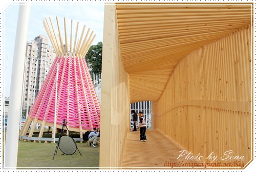 木與木之間繫上一圈圈的緞帶,有著神祕的浪漫風情,也帶有包裝禮物的味道。