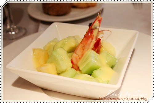 每回必點的鮮蝦水果沙拉,軒很喜歡吃這道菜的水果,甜甜的口味,老少皆宜。